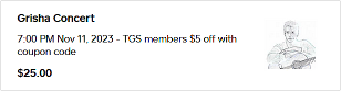 Performers: $50 TGS Members (contact